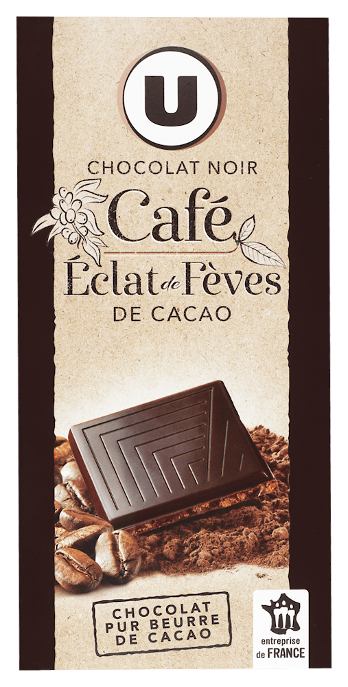 Chocolat noir café éclats fèves de cacao dégustation U 100gChocolat noir café éclats fèves de cacao dégustation U 100g