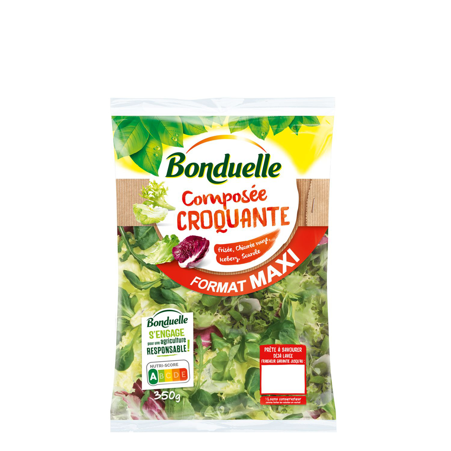 Ingrédients: Scarole (mini 30%), frisée (mini 15%), iceberg (mini 10%), chicorée rouge (mini 5%)