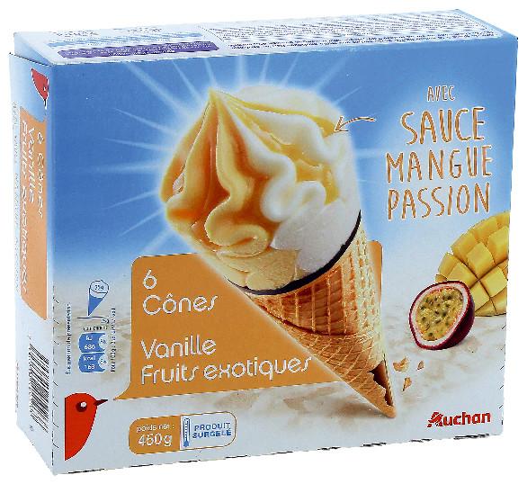Eau, sucre, lait écrémé reconstitué (origine ue), farine de blé (contient gluten ), graisse végétale de coprah, sirop de glucose-fructose, purée de mangue 3,7%, sirop de glucose, jus de fruit de la passion à base de concentré 3,3%, lactose (contient lait ) et protéines de lait , cacao maigre en poudre 0,6%, émulsifiants: lécithines de soja , mono- et diglycérides d'acides gras, gélifiants: farine de graines de caroube, gomme guar, gomme xanthane, pectines, dextrose, saccharose, protéines de pois hydrolysées, arôme naturel de mangue, arôme naturel de vanille (contient lait ), arômes naturels, jus concentré de fruit de la passion 0,1%, sel, colorants: rocou, curcumine, acidifiant: acide citrique, denrée alimentaire colorante: concentré de betterave, jus concentré de citron. pourcentages exprimés sur le total de la recette.