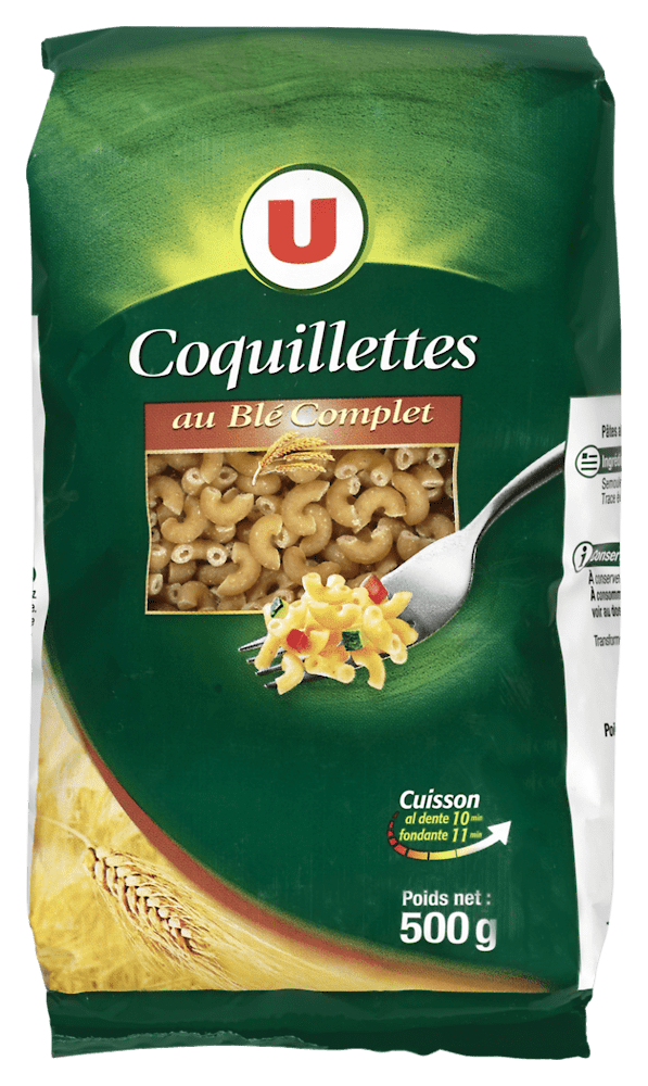 Coquillette au blé complet U sachet 500gCoquillette au blé complet U sachet 500g