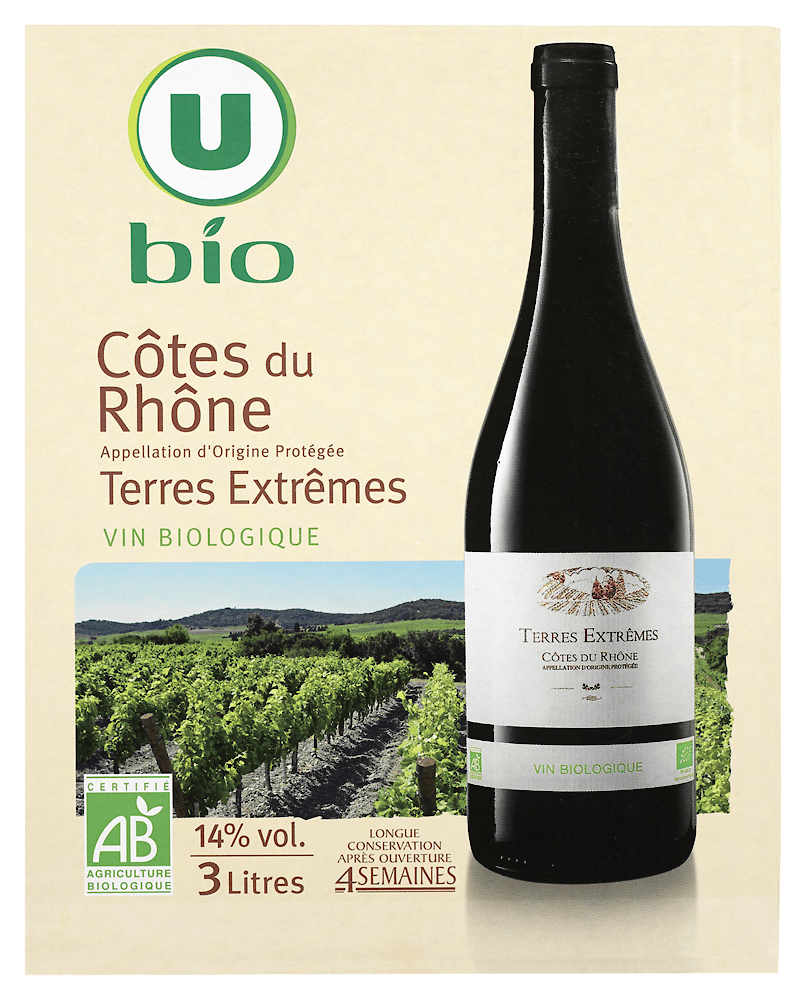 Côtes du Rhône AOP rouge Terres Extrêmes U BIO bib 3lCôtes du Rhône AOP rouge Terres Extrêmes U BIO bib 3l