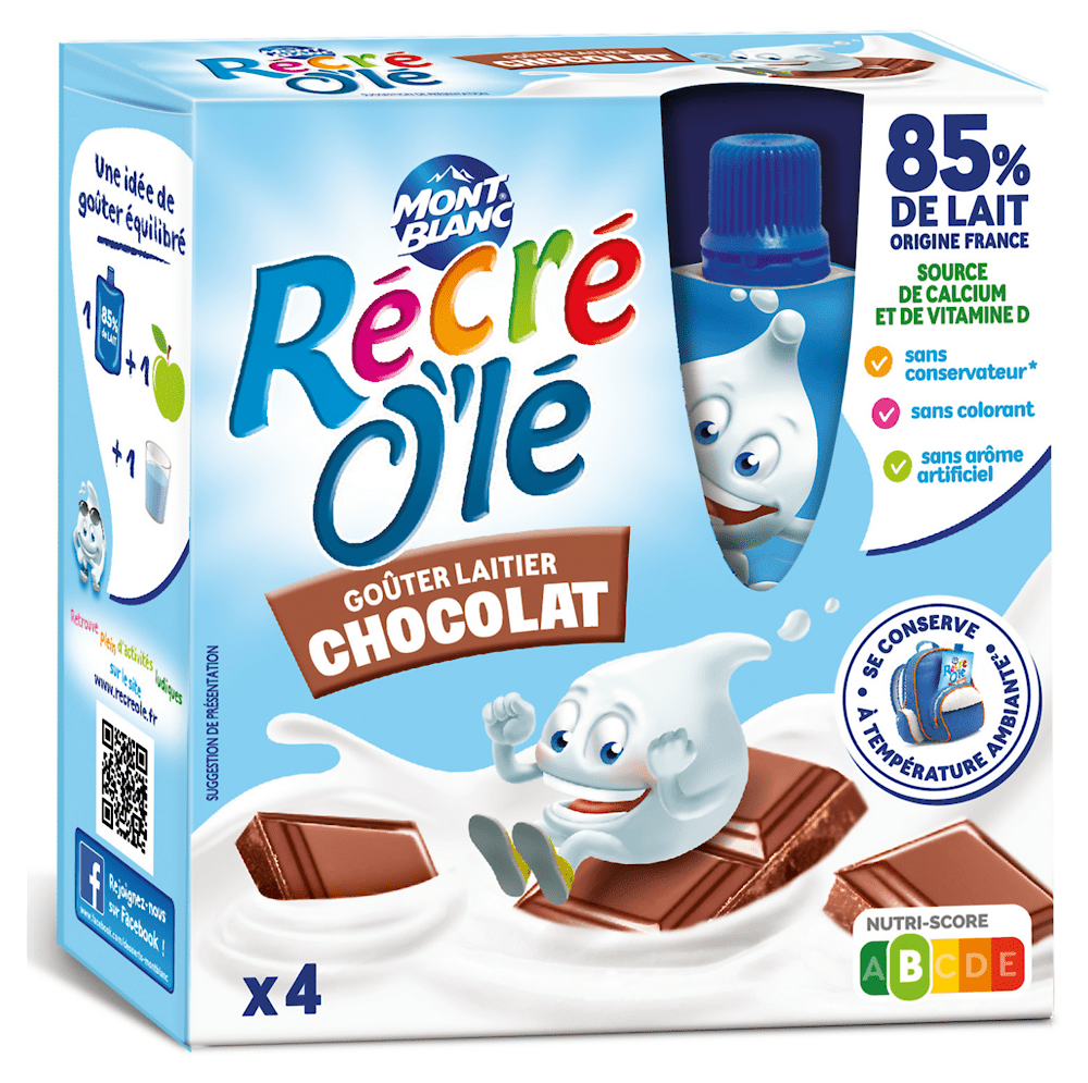 LAIT entier concentré et poudre de LAIT ÉCRÉMÉ (86%), sucre, amidon transformé de maïs, amidon de maïs, 1,6% de chocolat en poudre (sucre cacao en poudre), 0,5% de chocolat extra fin (cacao en poudre, cacao maigre en poudre, pâte de cacao, sucre), épaississant : gomme xanthane, concentré de minéraux du LAIT, vitamine D