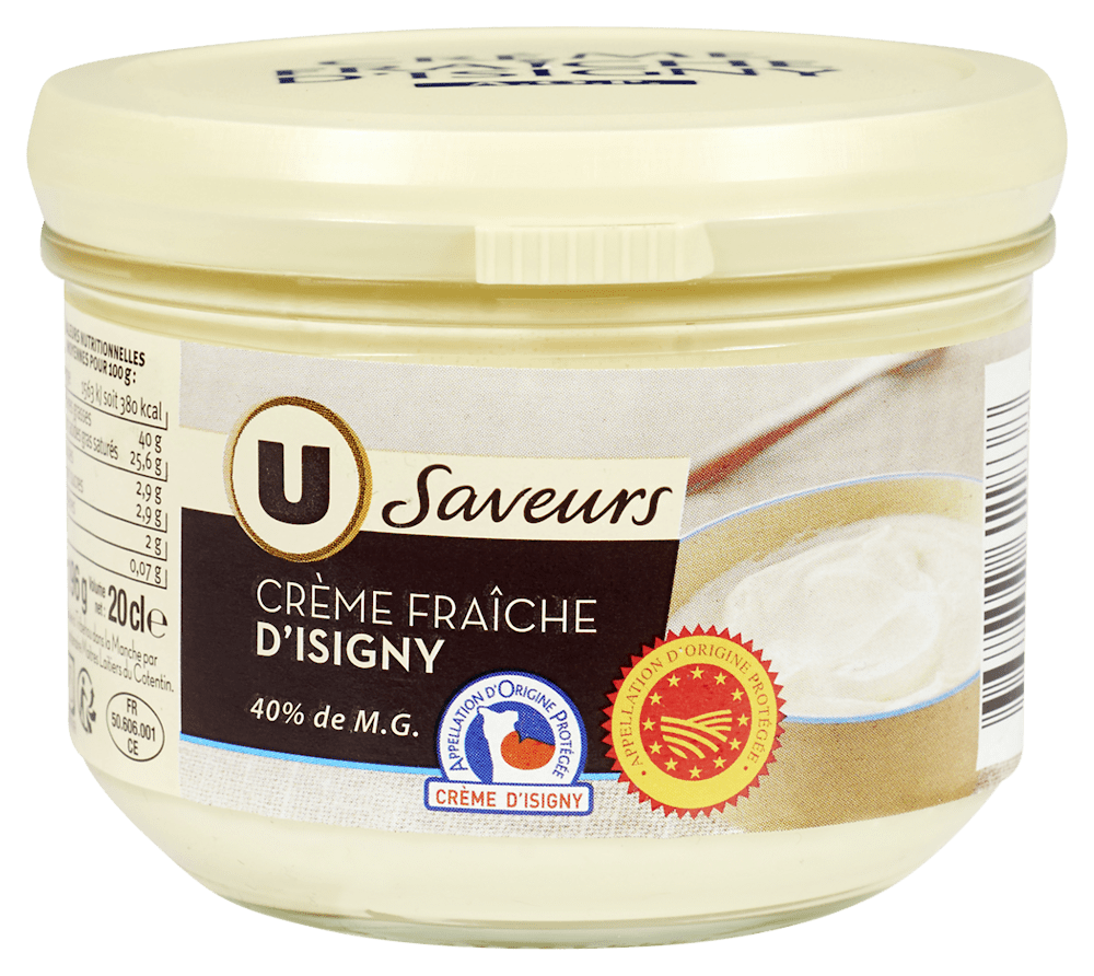 Crème fraîche épaisse 40%MG AOP Isigny U SAVEURS 20clCrème fraîche épaisse 40%MG AOP Isigny U SAVEURS 20cl