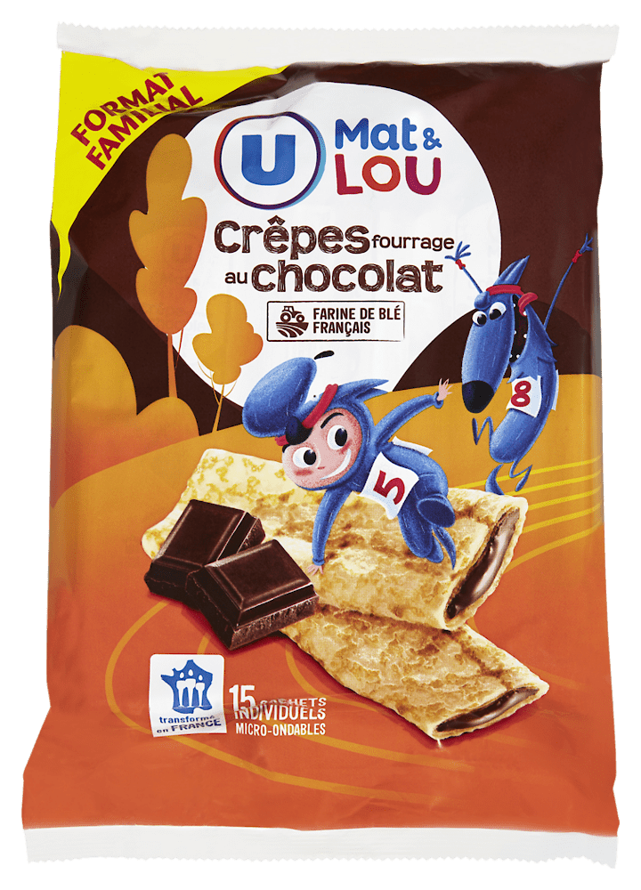Crêpes fourrées chocolat U MAT & LOU x15 480gCrêpes fourrées chocolat U MAT & LOU x15 480g