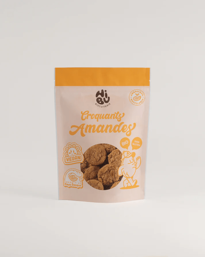Amandes effilées 30%, sucre blond de canne, farine de riz complet, farine de maïs, eau, amidon de maïs, extrait de vanille bourbon, farine de pois chiche, huile de tournesol, huile de colza, poudre à lever (bicarbonate de sodium, tartrate monopotassique)