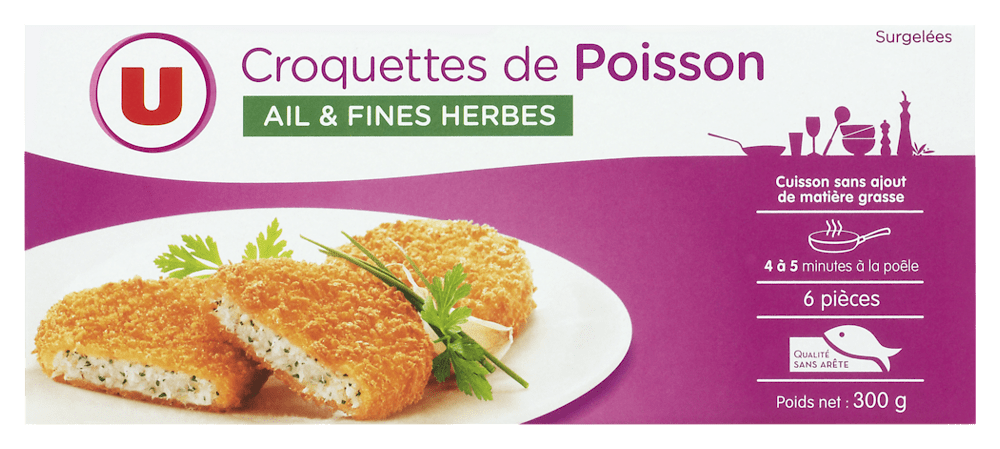 Croquettes de poisson ail et fines herbes U étui 6X50gCroquettes de poisson ail et fines herbes U étui 6X50g