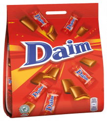 Sucre, huile de palme, beurre de cacao, pâte de cacao, LACTOSÉRUM en poudre (LAIT), LAITécrémé en poudre, AMANDES (2,9%), BEURRE concentré, préparation à base de LACTOSÉRUM (LAIT), LAITécrémé concentré sucré, sel, emulsifiant (lécitine de SOJA), arômes.
