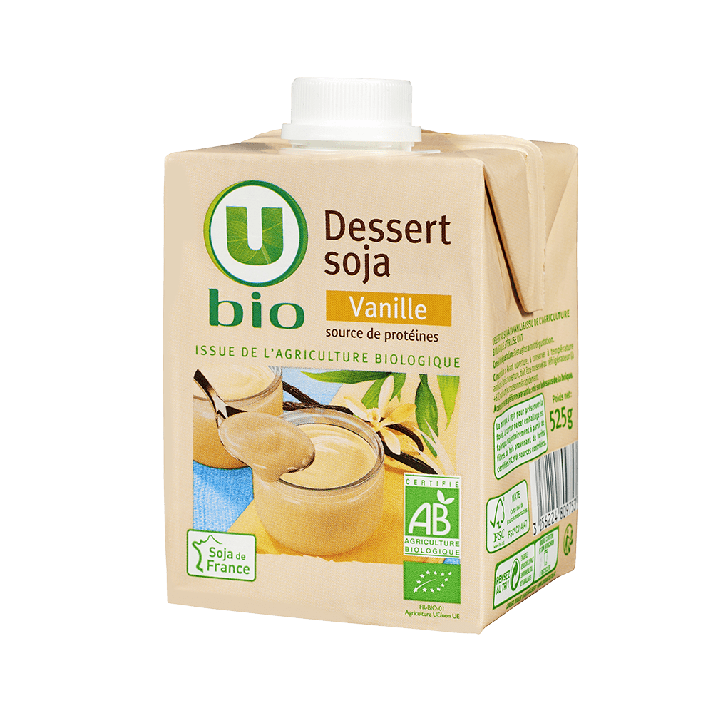 Dessert au soja, à la vanille, issu de l'agriculture biologique, stérilisée UHTDessert au soja, à la vanille, issu de l'agriculture biologique, stérilisée UHT