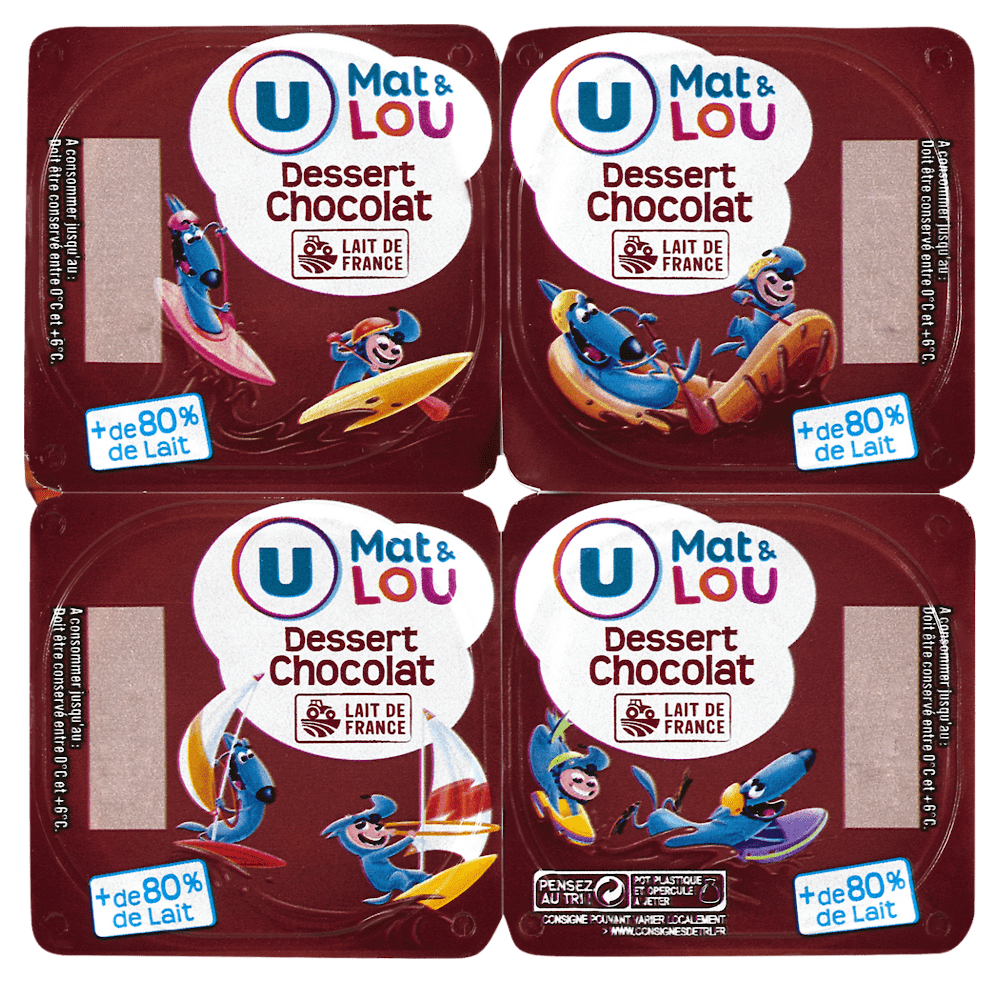 Dessert lacté gélifié au chocolat U MAT & LOU, 4x100gDessert lacté gélifié au chocolat U MAT & LOU, 4x100g