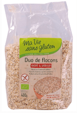 Flocons d’avoine*(70%), flocons de sarrasin*(30%) *issus de l’agriculture biologique sans gluten