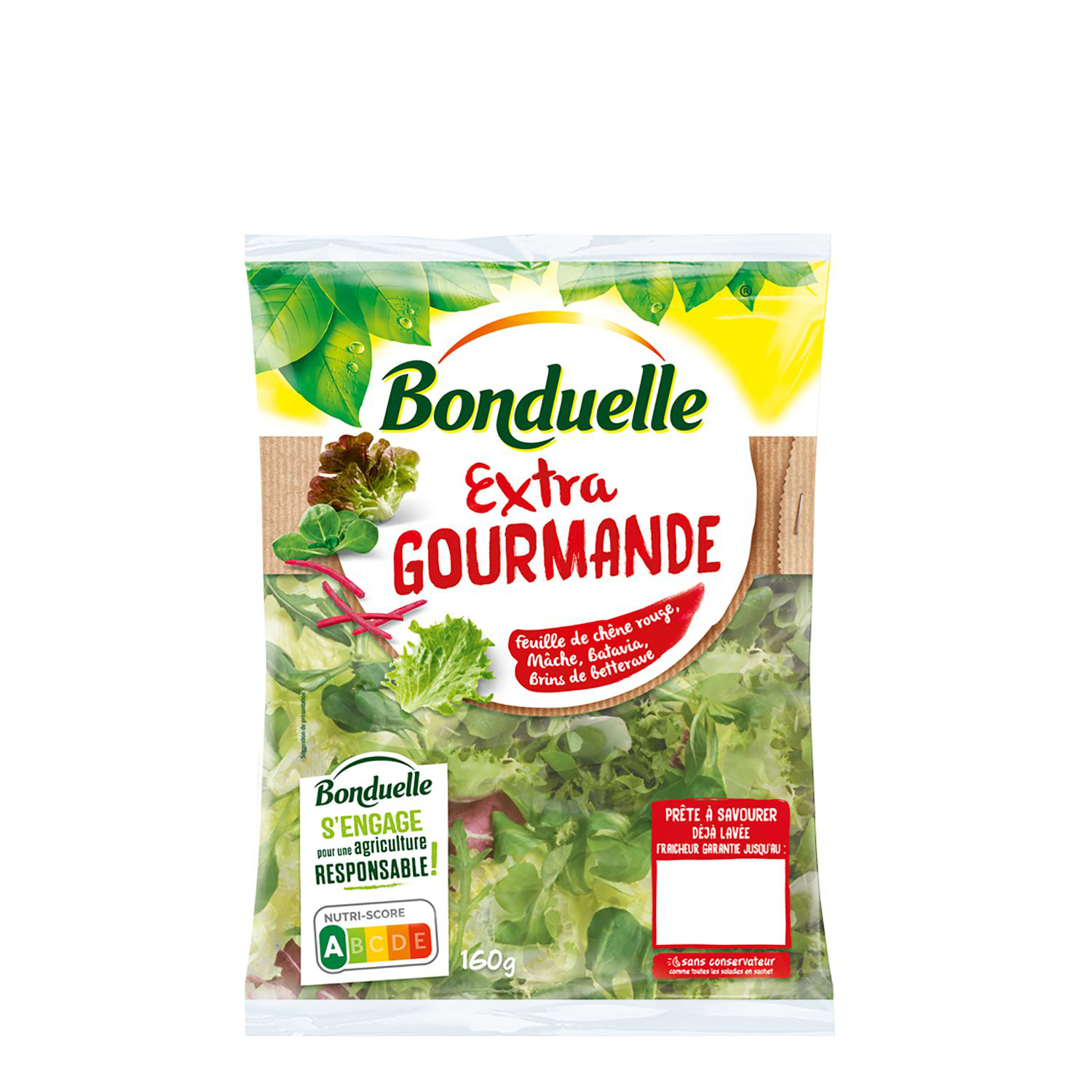 Ingrédients: Batavia (mini 25%), mâche (mini 10%), feuille de Chêne rouge (mini 10%), brins de betterave crue (mini 5%)