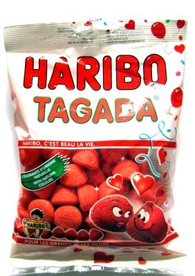 Sucre, sirop de glucose, gélatine, acidifiant : acide citrique, arôme, colorants : curcumine, carmins, carotènes mélangés. Il existe / a existé une autre version (même code barre) sans curcumine.