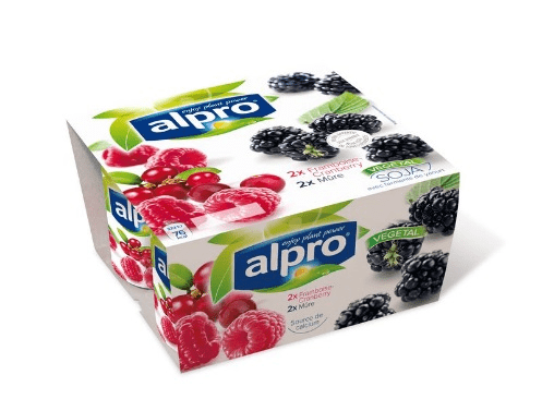jus de soja (78,7%) (eau, fèves de soja sans OGM décortiquées), sucre, framboise (5,2%) (fruit (3,1%), jus à base de concentré (2,1%)), cranberry (5%) (fruit (2,9%), jus à base de concentré (2,1%)), sirop de glucose-fructose, correcteurs d'acidité (acide citrique, citrates de sodium, acide malique), stabilisant (pectines), phosphate tricalcique, extrait de carotte, extrait de betteraves rouges, arôme, sel marin de table, antioxygènes (extrait riche en tocophérols, esters d'acides gras de l'acide ascorbique), vitamines (riboflavine (B2), B12, D2), ferments de yaourt (S. thermophilus, L. bulgaricus).