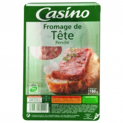 Tête de porc 90% (origine : France) - eau - vinaigre - sel - épice et plantes aromatiques déshydratées (dont persil 0,12%) - arôme naturel - conservateur : nitrite de sodium - colorant : carmins. Les informations en majuscules sont destinées aux personnes allergiques ou intolérantes.