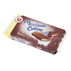 Graisses végétales (palme*, palmiste*, coco), sucre, farine de BLE, LAIT entier reconstitué 9,4%, OEUFS, sirop de glucose-fructose, stabilisant : sirop de sorbitol, sirop de glucose en poudre, cacao maigre 4%, LAIT entier en poudre 2,6%, cacao 1,2%, LAIT écrémé en poudre 1%, arômes, LACTOSERUM en poudre, émulsifiants : mono- et diglycérides d'acides gras et lécithines de SOJA, LACTOSE, poudres à lever : diphosphates - carbonates de sodium - carbonates d'ammonium, protéines de LAIT, sel.* Ce produit soutient la production d'huile de palme certifiée durable.