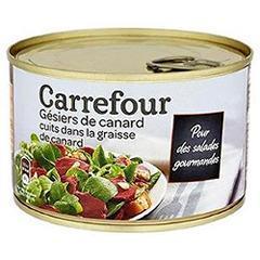 Gésiers de canard maigre 60 %, graisse de canard 37 %, sel, conservateur : nitrite de sodium.