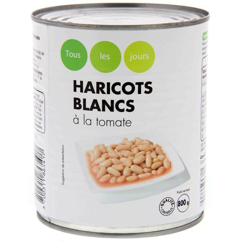 Eau - haricots blancs secs trempés 47% - purée de tomates double concentrée 1,8% - sel - amidon transformé - arôme naturel. Les informations en gras sont destinées aux personnes intolérantes ou allergiques.