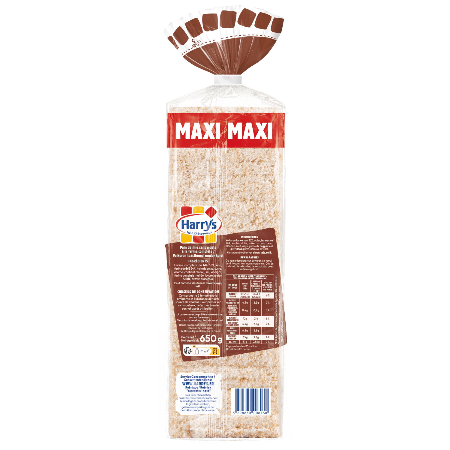HARRYS PAIN DE MIE 100% MIE COMPLET SANS CROUTE MAXI 650GHARRYS PAIN DE MIE 100% MIE COMPLET SANS CROUTE MAXI 650G