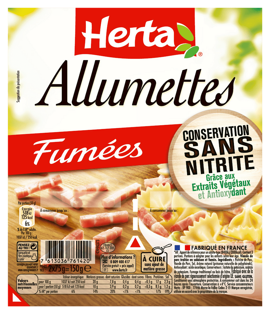 HERTA Allumettes Fumées Conservation Sans Nitrite - 2x75gHERTA Allumettes Fumées Conservation Sans Nitrite - 2x75g