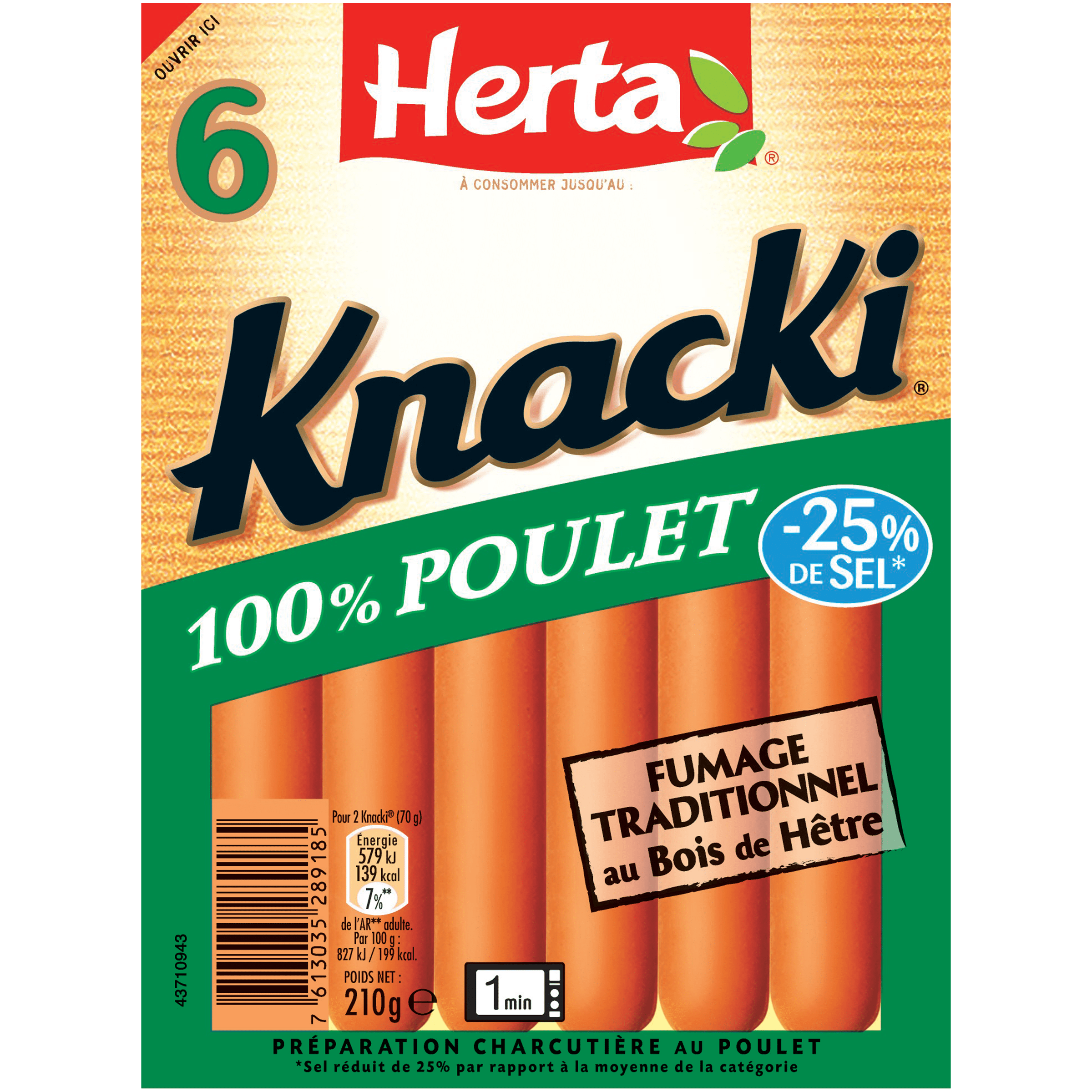 HERTA KNACKI Saucisses 100% Poulet -25% sel x6 -210gHERTA KNACKI Saucisses 100% Poulet -25% sel x6 -210g
