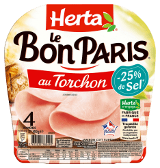 HERTA LE BON PARIS Jambon au Torchon -25% de sel x4 -140gHERTA LE BON PARIS Jambon au Torchon -25% de sel x4 -140g
