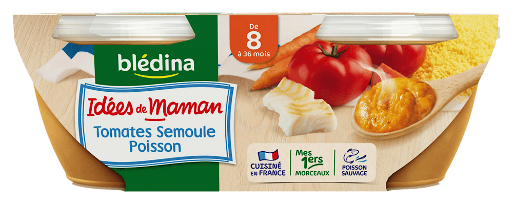 IDEES DE MAMAN BOLS Tomates Semoule Poisson 2x200g Dès 6 MoisIDEES DE MAMAN BOLS Tomates Semoule Poisson 2x200g Dès 6 Mois