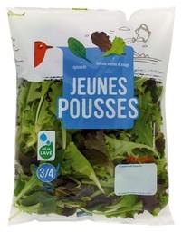 Jeunes pousses de laitues vertes (mini 25%), de laitue rouge (mini 15%), d'épinards (mini 5%)