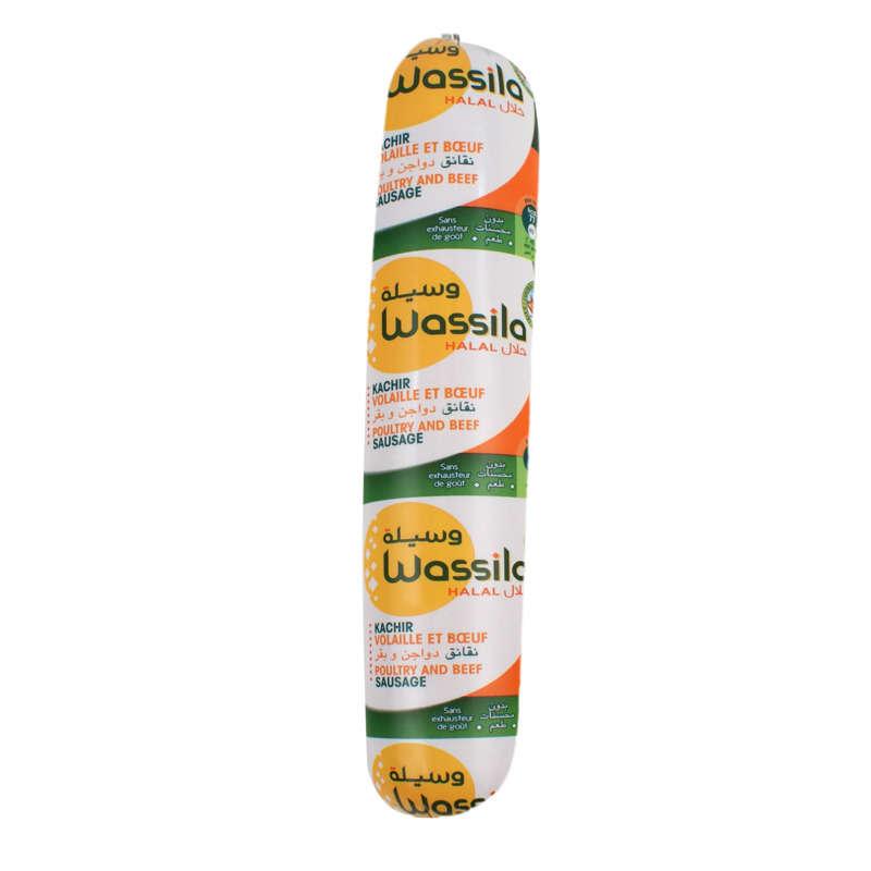 Viande séparée mécaniquement de dinde 51% - eau - amidon de maïs - gras de bœuf 5% - sel - dextrose - stabilisants : E451, E450 - épices et plante aromatique - arôme naturel - antioxydant : ascorbate de sodium - conservateur : nitrite de sodium. Les informations en majuscules sont destinées aux personnes intolérantes ou allergiques.