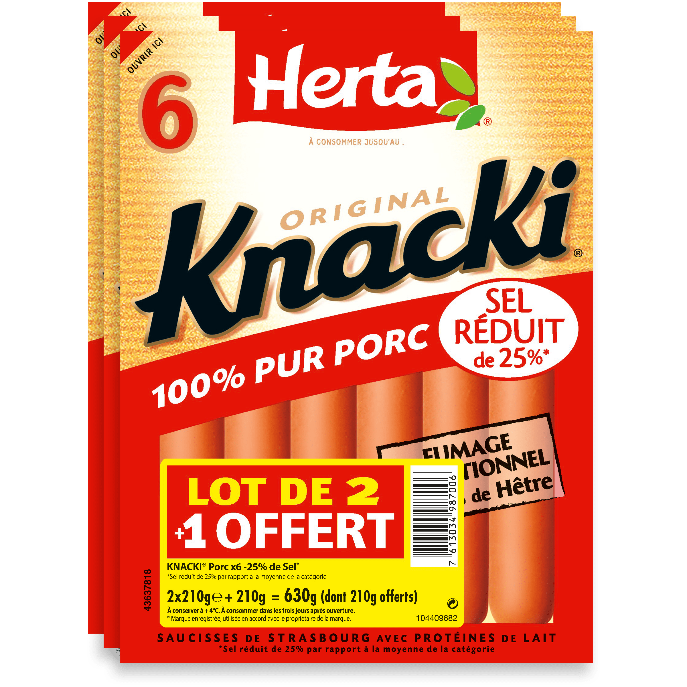 KNACKI ORIGINAL Saucisses 100% Porc -25%sel x6 LOT 2+1 OFRKNACKI ORIGINAL Saucisses 100% Porc -25%sel x6 LOT 2+1 OFR
