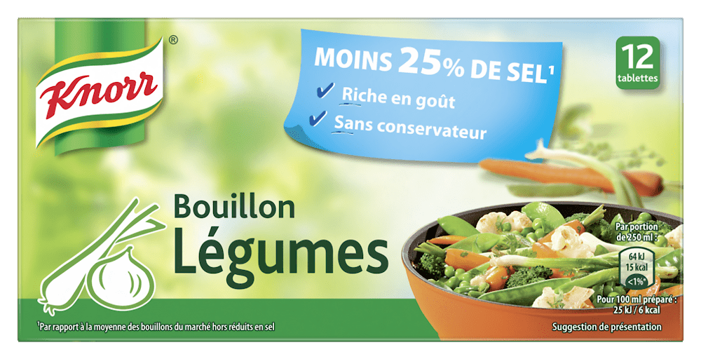 Knorr Bouillon Cube Légumes Réduit en Sel 12 Cubes 109gKnorr Bouillon Cube Légumes Réduit en Sel 12 Cubes 109g
