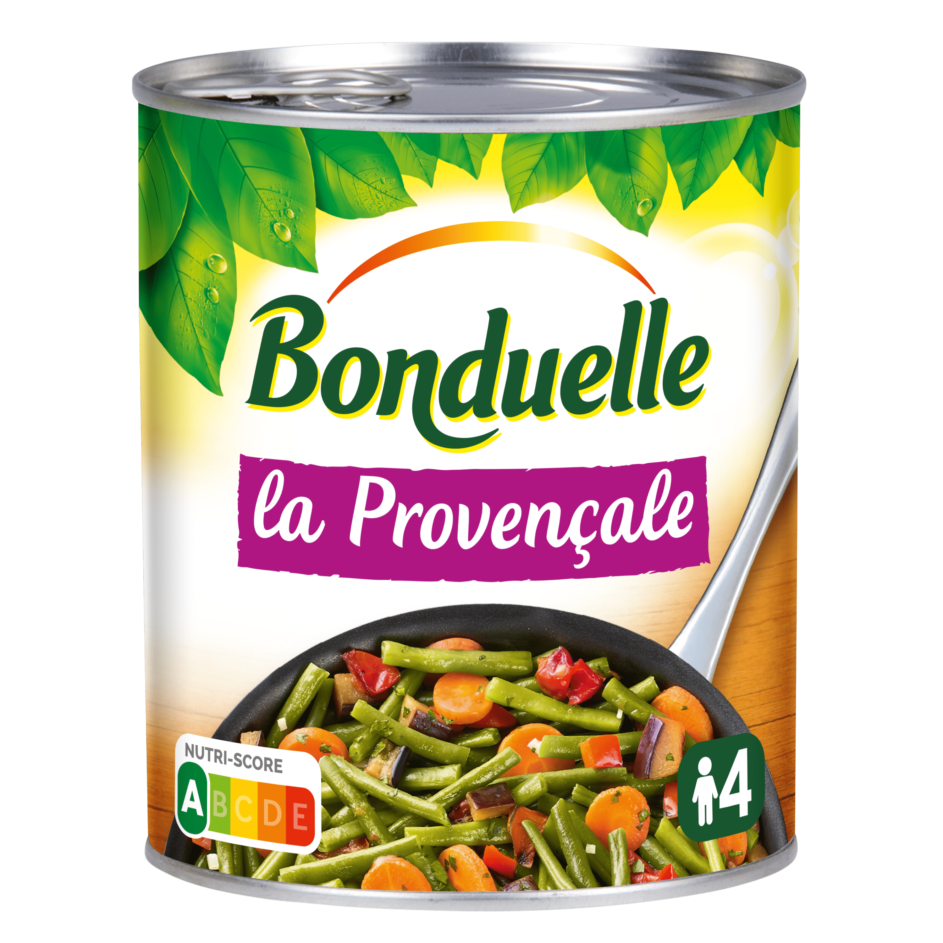 Haricots verts 46%, carottes 24%, aubergines grillées 11%, poivrons rouges 9,3%, huile d'olive vierge extra 1,7%, tomates séchées au soleil 1,6% (tomates séchées 1,4%, sel) persil, ail en poudre 0,8%, eau, jus de citron concentré, sel, arômes naturels, antixoydant : acide ascorbique, graisse de poulet 0,03%, extrait naturel de romarin, épices.