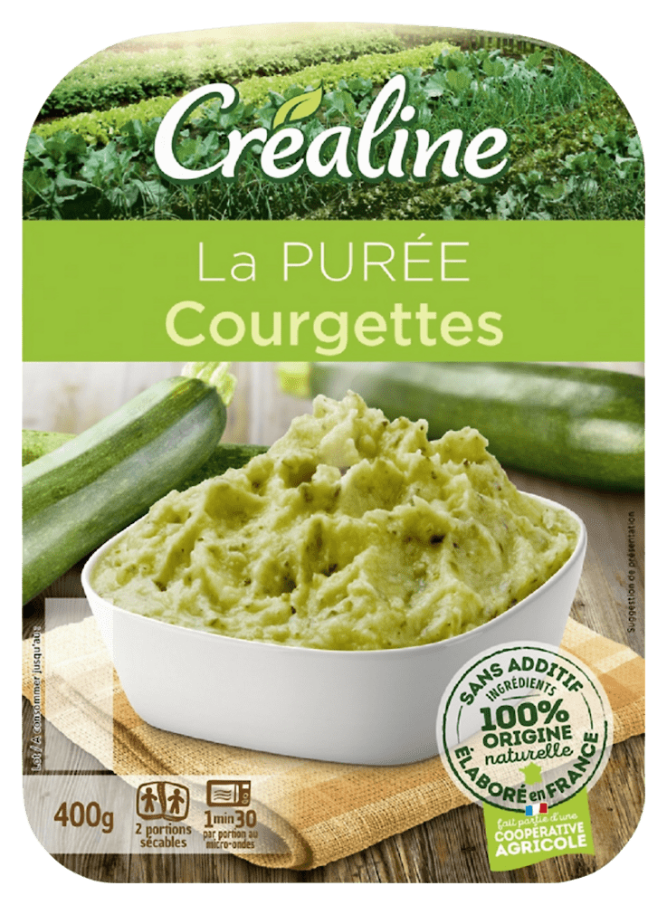 Courgettes 80%, LAIT DEMI-ÉCRÉMÉ, CRÈME fraiche, amidon de maïs, LAITécrémé en poudre, sel