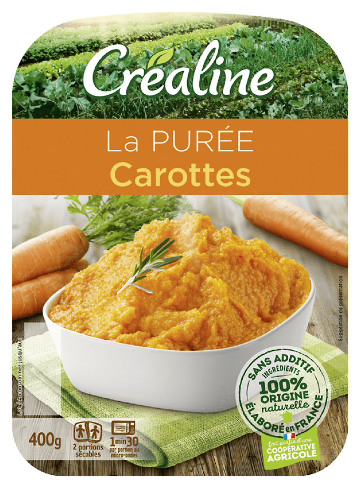 Carottes (75 %), pommes de terre, LAIT DEMI-ÉCRÉMÉ, CRÈME fraîche, fécule de manioc, sel.