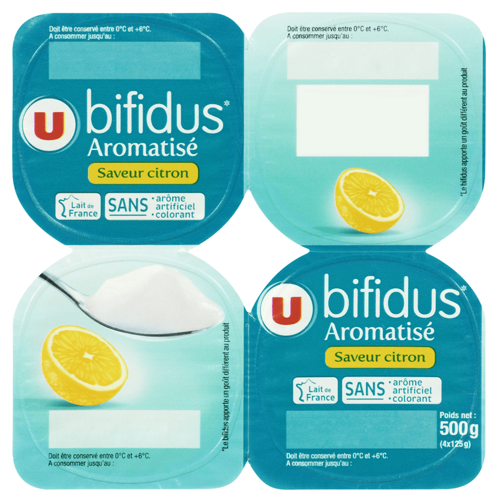 Lait fermenté au bifidus sucré saveur citron U 4x125gLait fermenté au bifidus sucré saveur citron U 4x125g