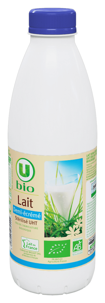 Lait UHT 1/2 écrémé U BIOLOGIQUE bouteille 1 litreLait UHT 1/2 écrémé U BIOLOGIQUE bouteille 1 litre