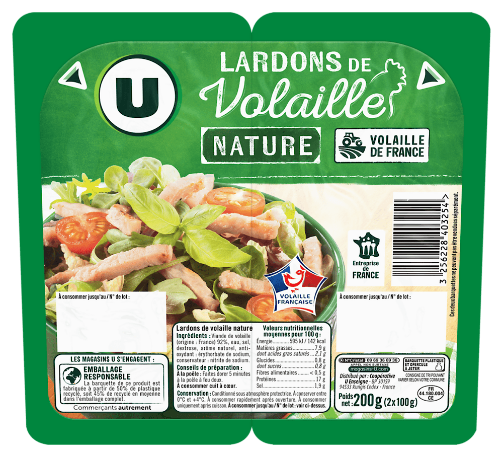 Lardons de volaille nature U 2x100gLardons de volaille nature U 2x100g