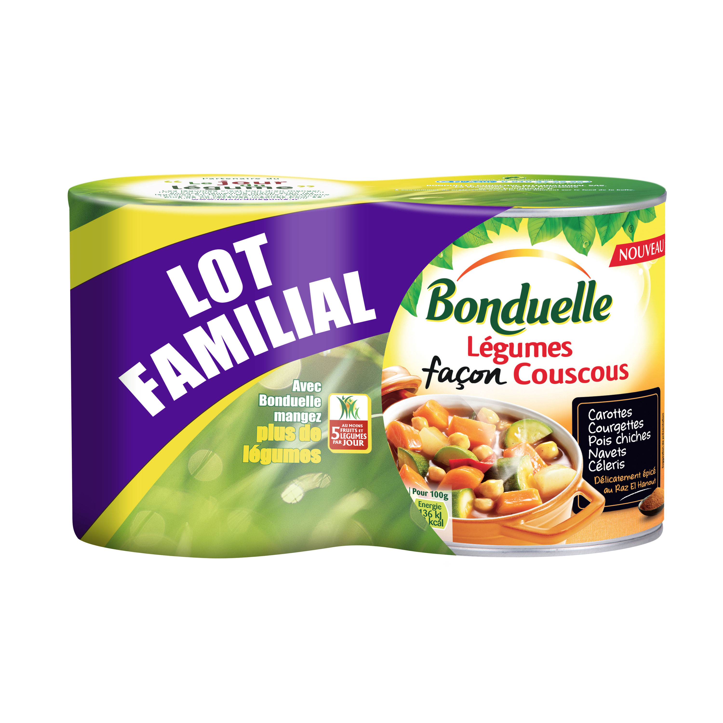 Mélanges de légumes 50% (carotte 15%, courgette 15%, pois chiche 7%, navet 6%, poivron rouge 4%, garniture de CELERI 4%), eau, concentré de tomate, sel, arômes naturels (GLUTEN), sucre, raz el hanout 0,3% (cumin, cardamone, curcuma, gingembre, coriandre).