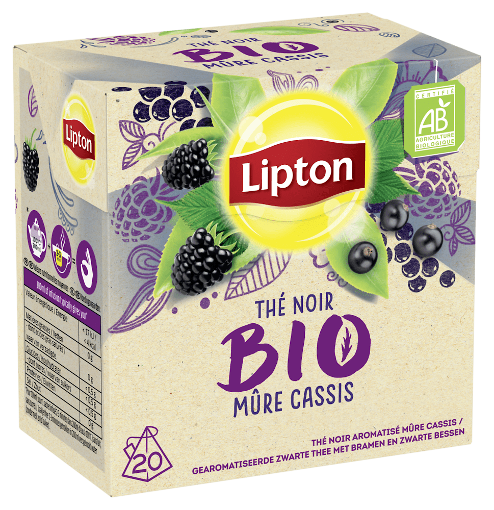 Lipton Thé Noir Mûre Cassis Bio 20 Sachets PyramidsLipton Thé Noir Mûre Cassis Bio 20 Sachets Pyramids