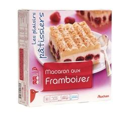 CRÈME fraîche (contient LAIT), framboises 20%, sucre, blanc d'ŒUF liquide (blanc d’ŒUF ; épaississants : gomme de guar, gomme xanthane), AMANDES en poudre (FRUIT À COQUE) 7%, sucre glace, LAIT ÉCRÉMÉ en poudre réhydraté, eau, farine de BLÉ (contient GLUTEN), noix de coco râpée 1%, jaune d’ŒUF liquide, gélatine de bœuf, amidon de riz, blanc d'ŒUF en poudre, LACTOSE (contient LAIT) et PROTÉINES DE LAIT, arôme naturel de vanille 0,1%, gousses de vanille épuisées broyées ; épaississant : gomme xanthane. Pourcentages exprimés sur le total de la recette.