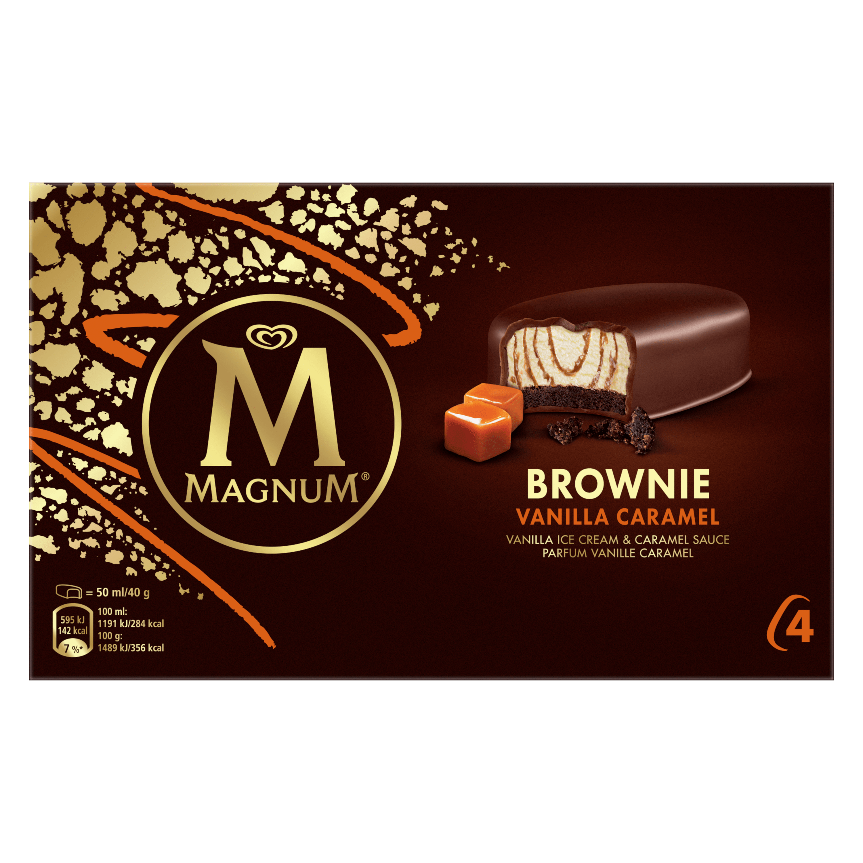 Magnum Barre Glacée Brownie Vanille Caramel x4 200mlMagnum Barre Glacée Brownie Vanille Caramel x4 200ml