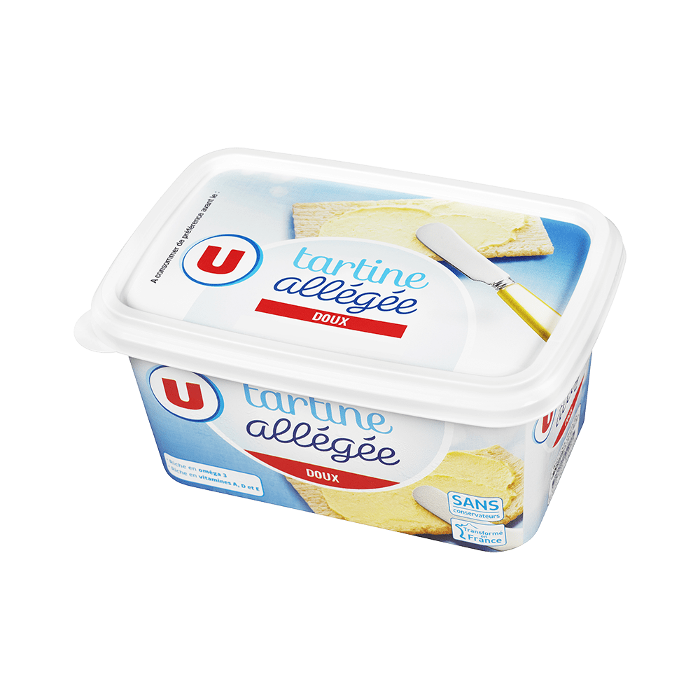 Matière grasse à tartiner allégée au tournesol, à 50% de matière grasse au tournesol, riche en Oméga 3 et en Vitamine E, enrichie en Vitamine A et DMatière grasse à tartiner allégée au tournesol, à 50% de matière grasse au tournesol, riche en Oméga 3 et en Vitamine E, enrichie en Vitamine A et D