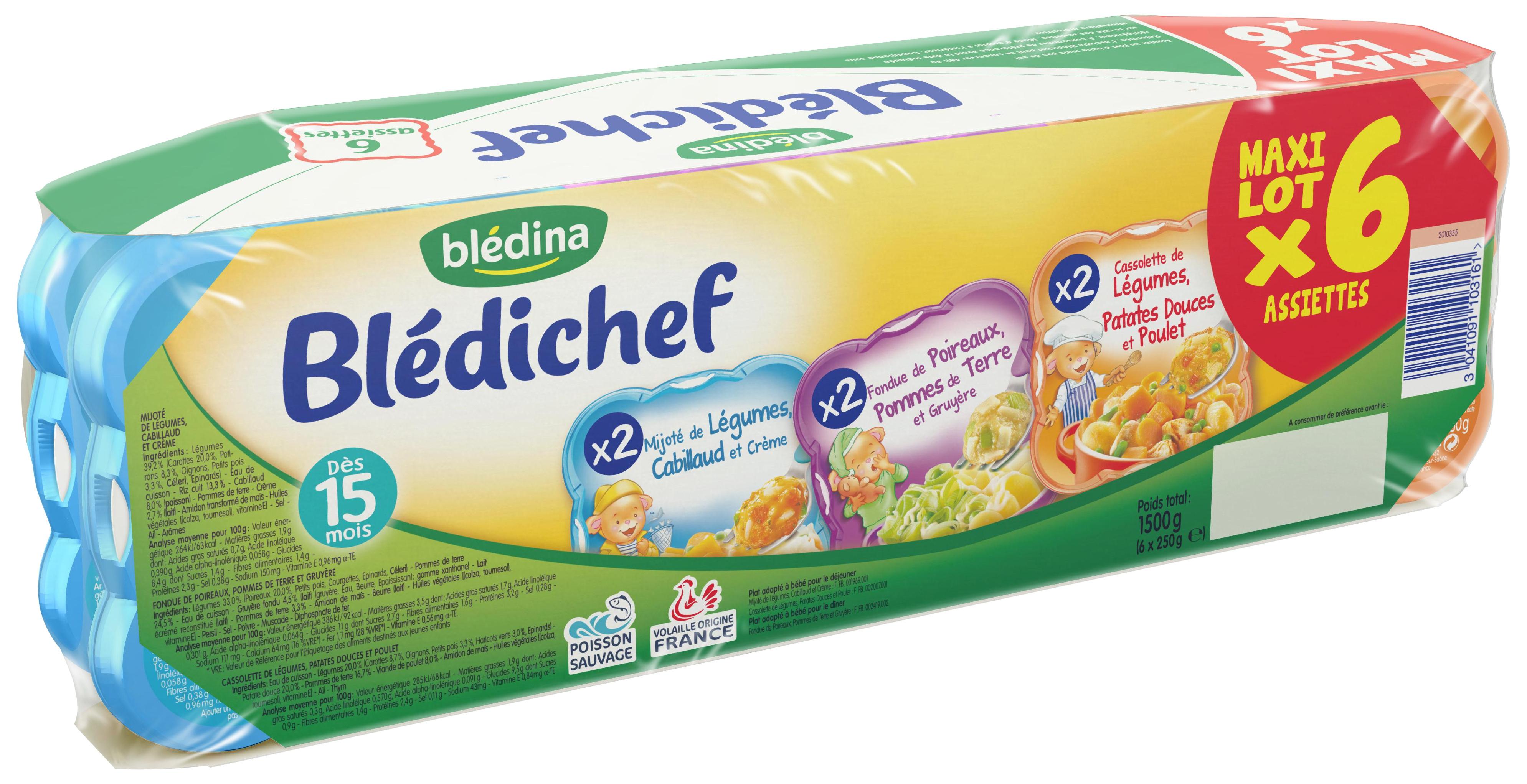 MAXI LOT BLEDICHEF 6X260G dès 15 mois 2 Mijoté lég Cabillaud Crème/2 Fondue de poireaux PDT gruyère/2 Cassolette de leg patates douces pouletMAXI LOT BLEDICHEF 6X260G dès 15 mois 2 Mijoté lég Cabillaud Crème/2 Fondue de poireaux PDT gruyère/2 Cassolette de leg patates douces poulet