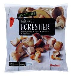 Champignons forestiers 51% (bolets jaunes (boletus luteus), cèpes morceaux(boletus edulis - aereus - pinicola - reticulatus)), shiitakés (lentinus edodes) , pholiotes (kuehneromyces mutabilis).