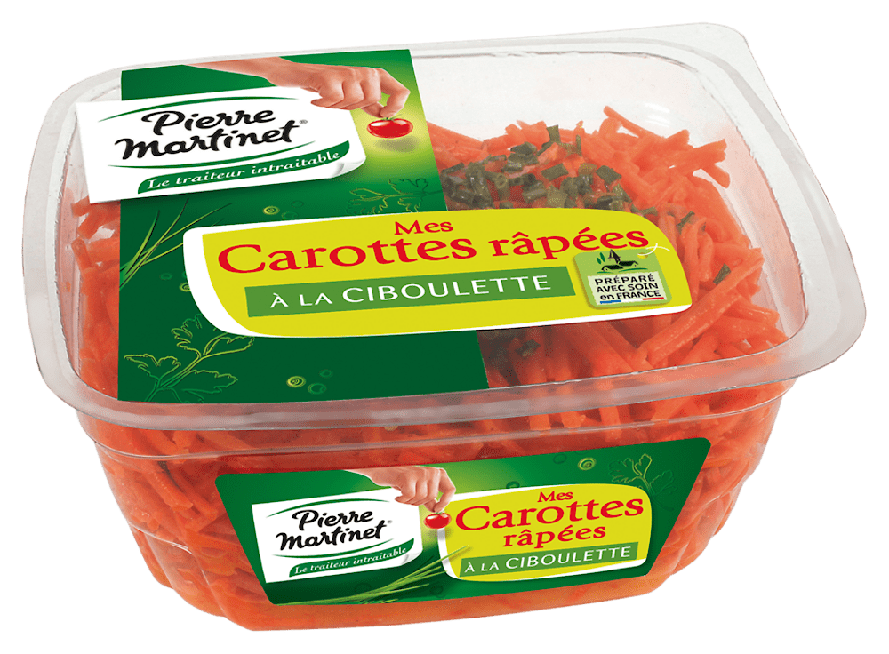 Carotte 79%, eau, huilede colza, vinaigre d'alcool, ciboulette, épice, jus de citron à base de concentré, MOUTARDE (eau, graine de MOUTARDE, vinaigre d'alcool, sel), sel, ail, sucre, amidon transformé, conservateur : sorbate de potassium, épaississant : gomme xanthane