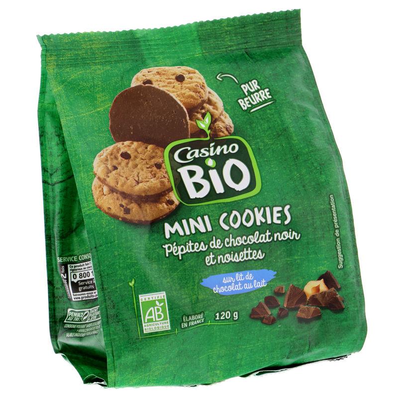 Mini Cookies pépites de chocolat noir et noisettes sur lit de chocolat au lait Bio - 120gMini Cookies pépites de chocolat noir et noisettes sur lit de chocolat au lait  Bio - 120g
