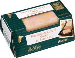 Foie gras de canard du Sud-Ouest, sel, poivre, conservateur : nitrite de sodium.