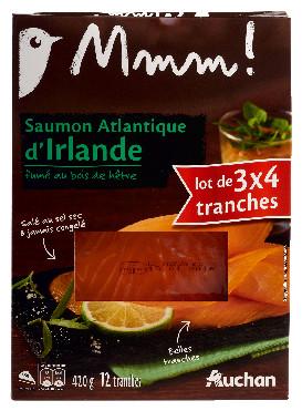 saumon atlantique (salmo salar) ( poisson ) élevé en irlande 97%, sel 3%.