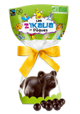 Moulage panda de chocolat noir et ses billes de chocolat noirMoulage panda de chocolat noir et ses billes de chocolat noir