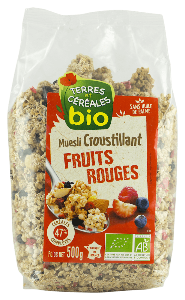 MUESLI CROUSTILLANT AUX FRUITS ROUGES 500g TC AB*MUESLI CROUSTILLANT AUX FRUITS ROUGES 500g TC AB*
