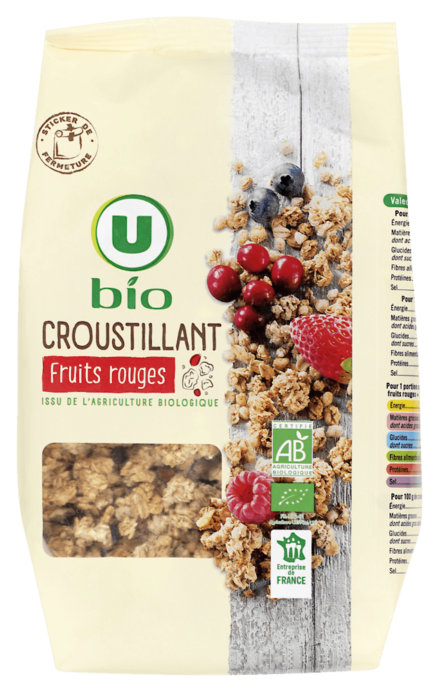 Muesli croustillant fruits rouges U BIO sachet 375gMuesli croustillant fruits rouges U BIO sachet 375g
